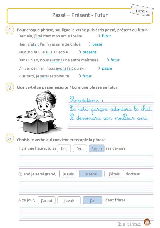 Correction – Fiches d’exercices de Conjugaison – CE1-CE2